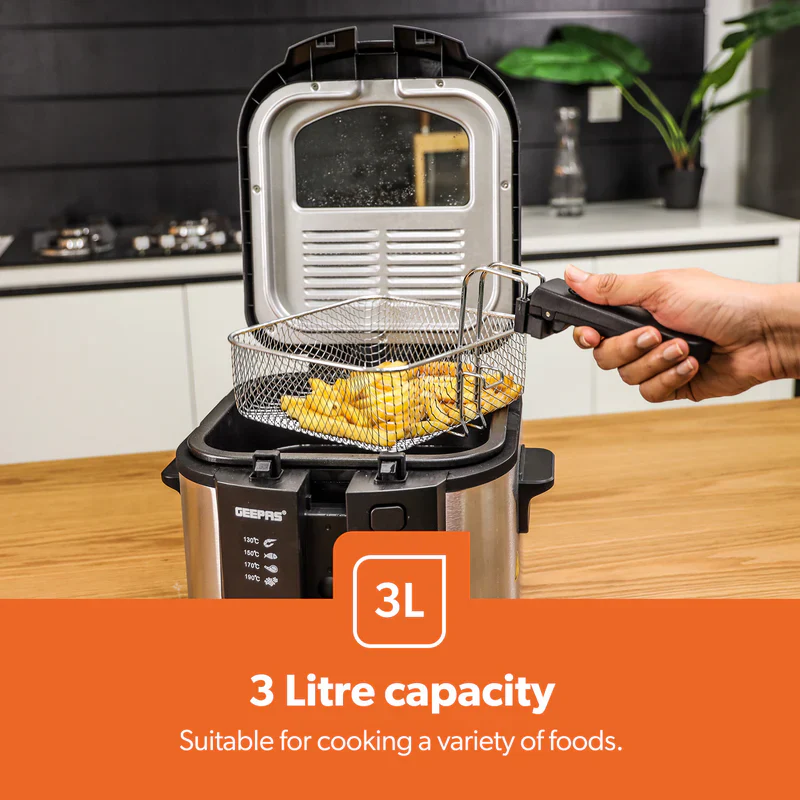 🔷Geepas Deep Fryer GDF36014 - 3 Liter Capacity, Adjustable Thermostat & Timer