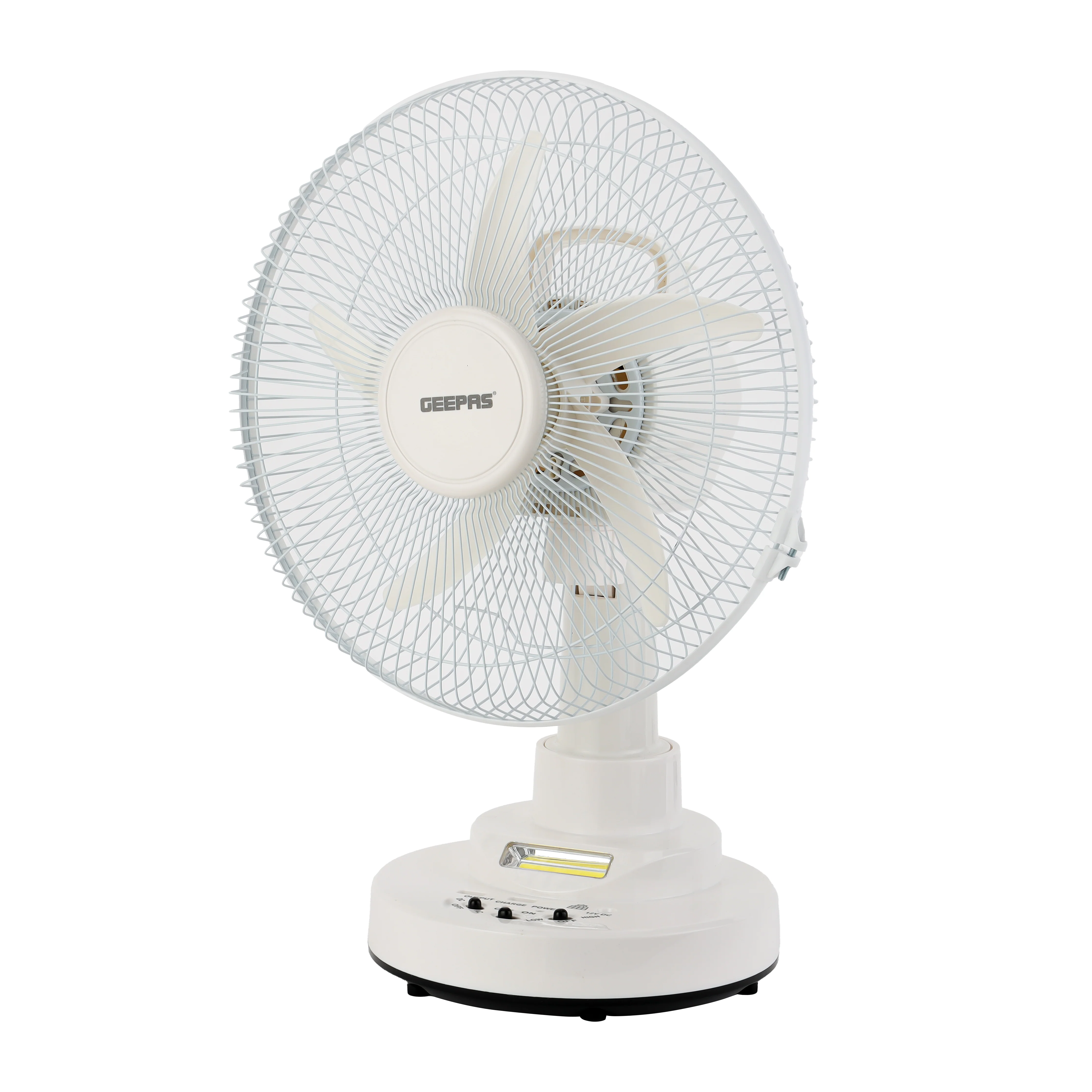 Geepas GF21118 Rechargeable 12-Inch Oscillating Fan | 3-Speed Control | LED Light | Long Battery Backup | Portable Design for Home & Outdoor Use | 2 Years Warranty