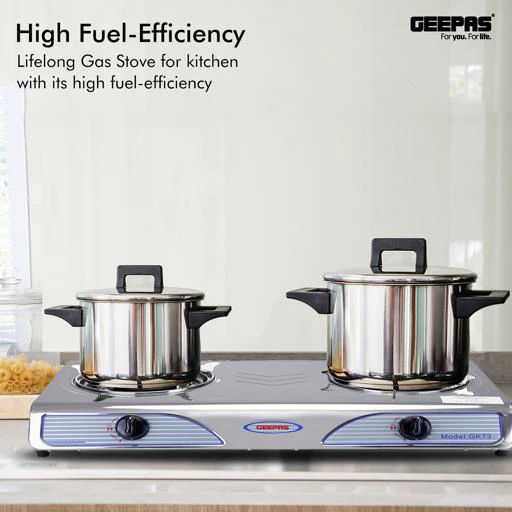 Geepas GK73 Stainless Steel Gas Stove | Powerful 7KW Double Burner | Auto Ignition for Easy Use |Durable Design with High Efficiency Cooking Performance |2 Years Warranty