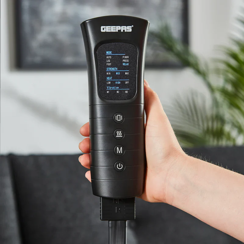 Experience full-leg rejuvenation with the Geepas 3-in-1 Foot, Calf & Thigh Massager. Designed for deep relaxation and improved blood circulation, this massager combines vibration, air compression, and multiple intensity modes to relieve pain and muscle fatigue. With adjustable wraps and 6 customizable modes, it provides targeted comfort for your legs, whether after a long day or an intense workout. Its 20-minute auto shut-off ensures safe use every time.