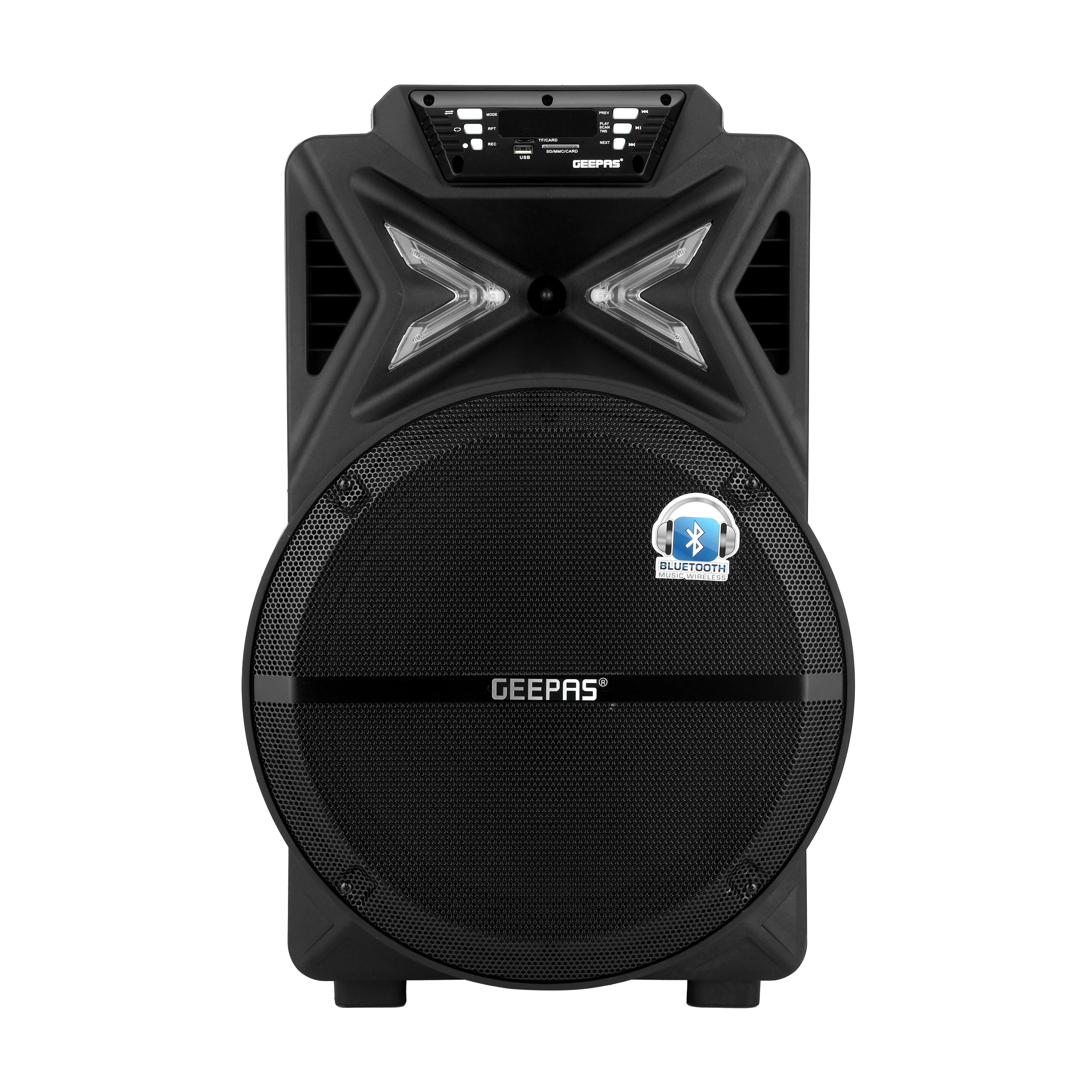 Geepas GMS11131 Rechargeable Trolley Bluetooth Speaker - Wireless Microphones, Rechargeable Battery |Karaoke DJ Speaker |Trolley Handle, USB & Auxiliary Inputs