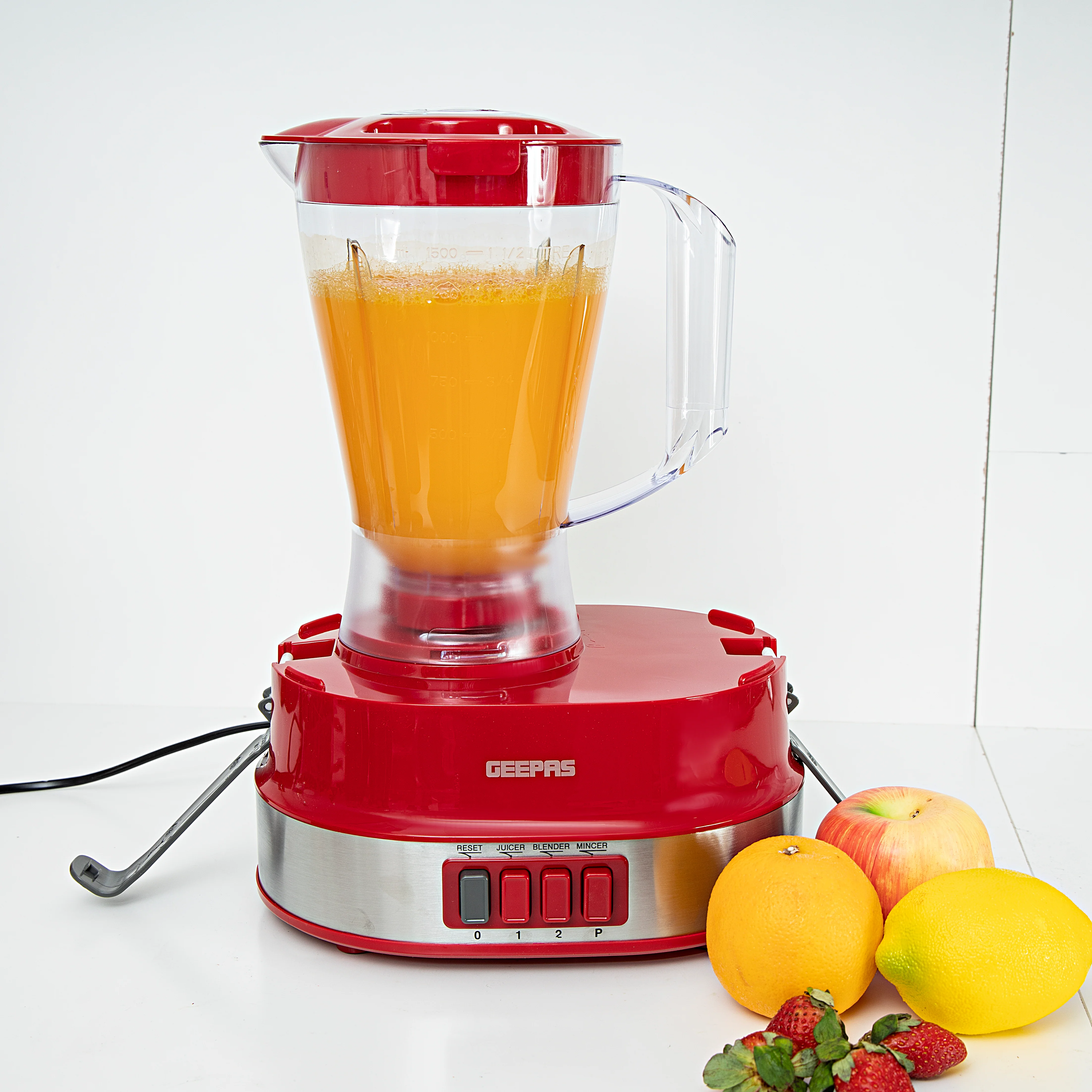 Geepas GSB9990 4-in-1 Food Processor Electric Blender & Juicer | 2 Speed with Pulse & Safety Interlock| Multi-Functional Juicer & Blender| Coffee Grinder & Mill Included