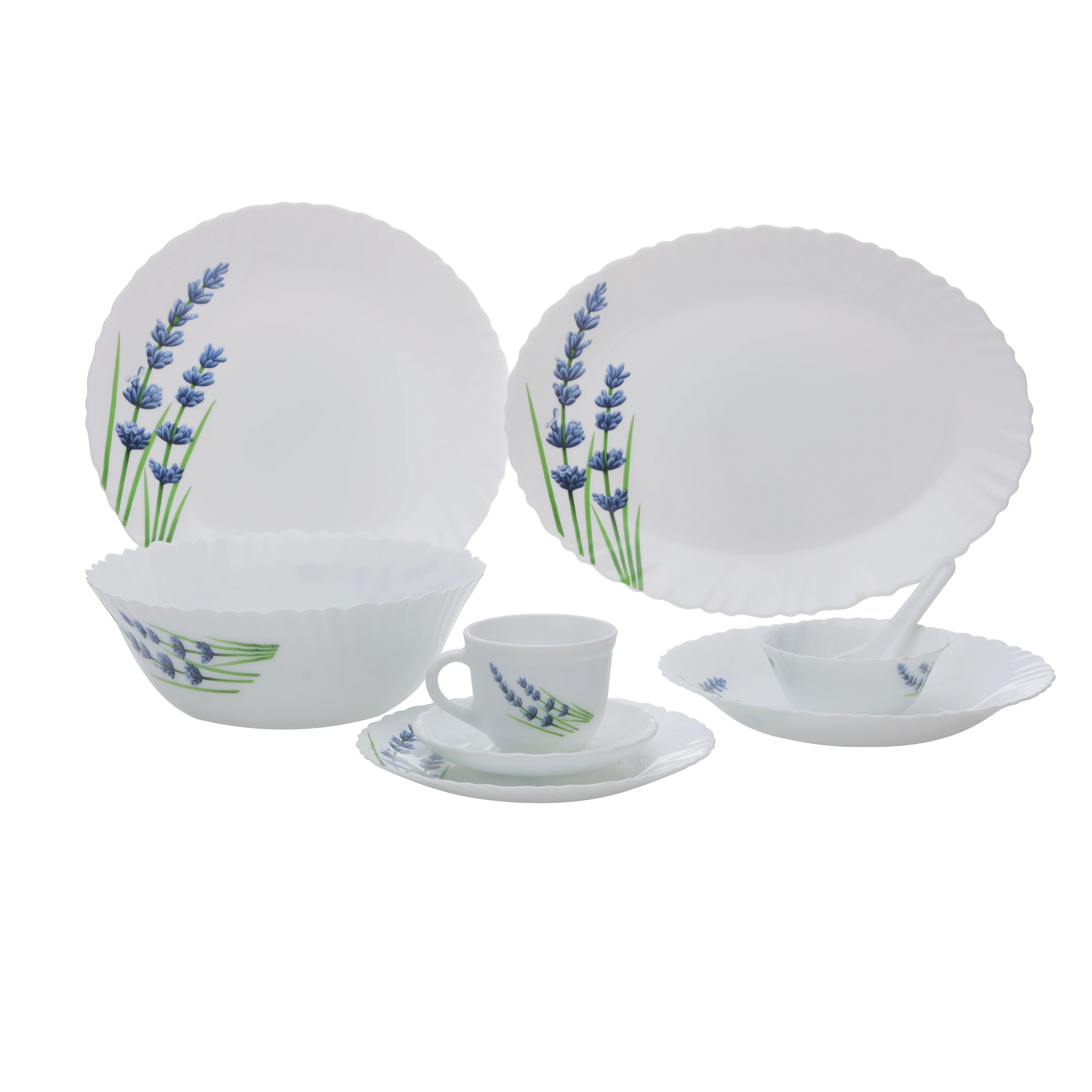 Royalford RF10679 44-Piece Opalware Dinner Set | English Lavender Design | | Lightweight & Elegant Floral Pattern| Dishwasher & Freezer Safe |Complete Family Tableware