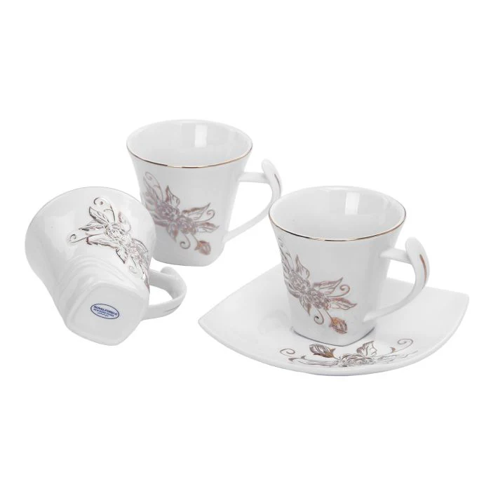 Royalford RF5725 New Bone China Square Cup & Saucer Set, 12 Pcs | Ideal for Daily Use - Non-Toxic, Ecologically Tasteless, Smooth Surface, Translucent, Comfortable Grip and Lightweight