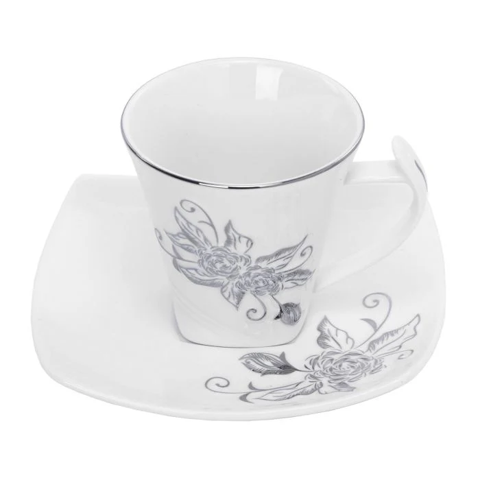 Royalford RF5726 New Bone China Square Cup & Saucer Set, 12 Pcs | Ideal for Daily Use - Non-Toxic, Ecologically Tasteless, Smooth Surface, Translucent, Comfortable Grip and Lightweight